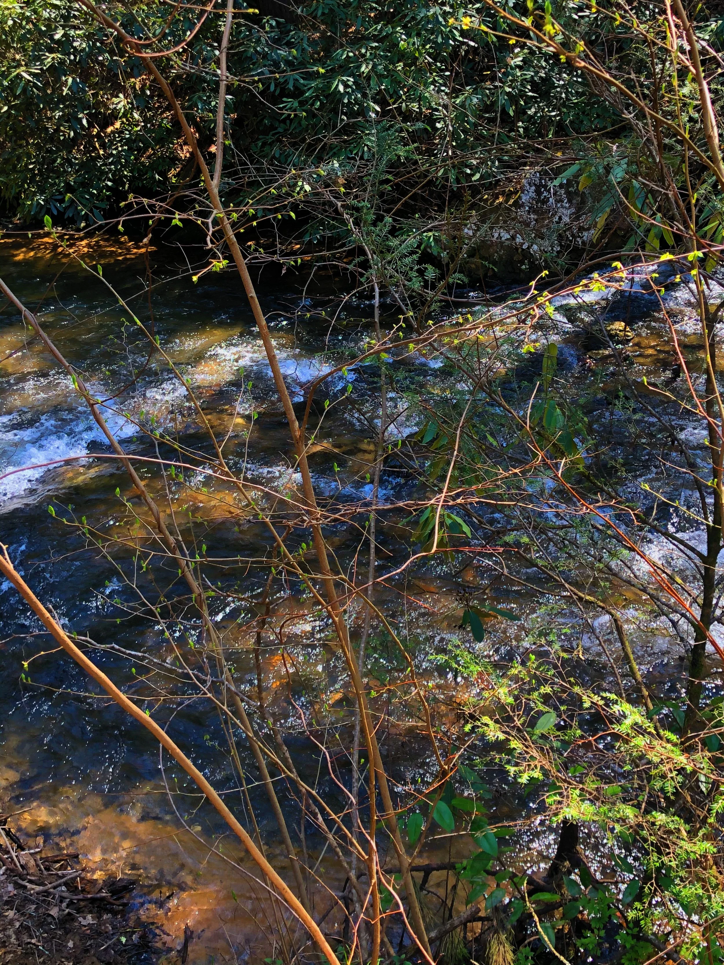 The water is moving faster than at other sites we’ve stopped at, and small bubbles are forming to the left and right.